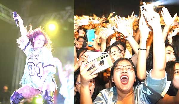 इस दौरान उन्होंने अपने अनुभव साझा करने के साथ छात्रों से बात भी की। वहीं शीला की जवानी जैसे लोकप्रिय आइटम नंबर पर छात्रों ने जमकर सीटी मारी। प्रस्तुति के दौरान खचाखच भरे मैदान में युवाओं ने जमकर लुत्फ उठाया। इस दौरान जगह-जगह छात्र संगीत की धुन पर मदहोश होकर नाचते-गाते और थिरकते नजर आए। सुनिधि चौहान अब तक दो हजार से ज्यादा गानों में अपनी आवाज दे चुकी हैं।