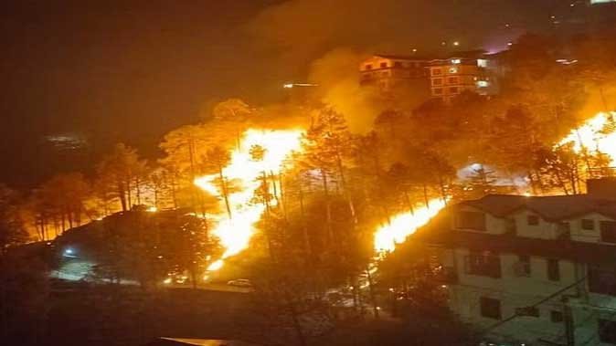 जंगल की आग घर के पास पहुंची, बुझाते समय नवविवाहिता झुलसी